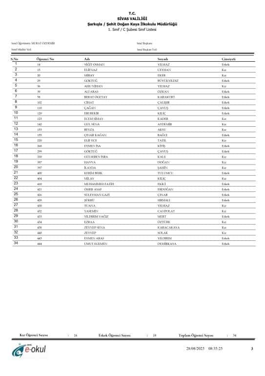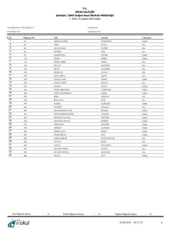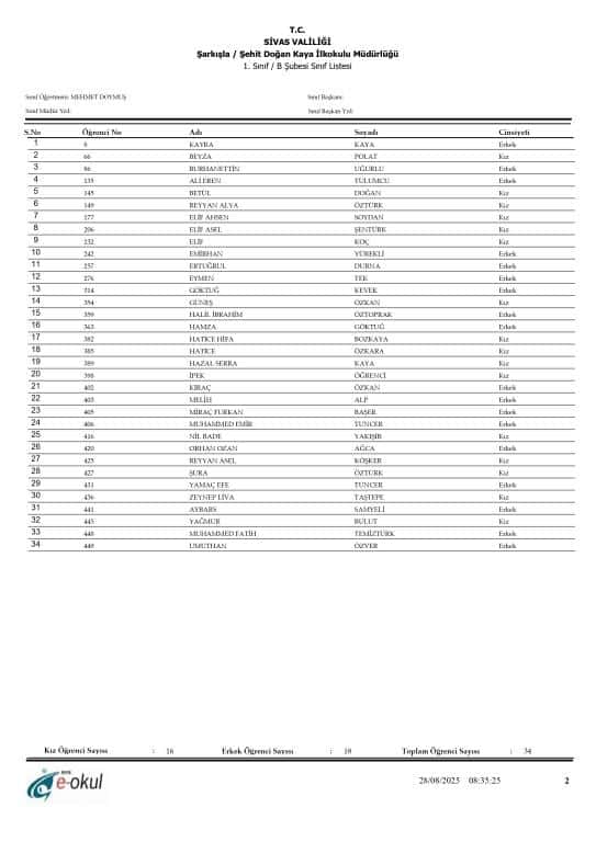 2025-2026 Eğitim-Öğretim Yılı 1.Sınıf Kura Sonuçlarımız Belli Olmuştur.